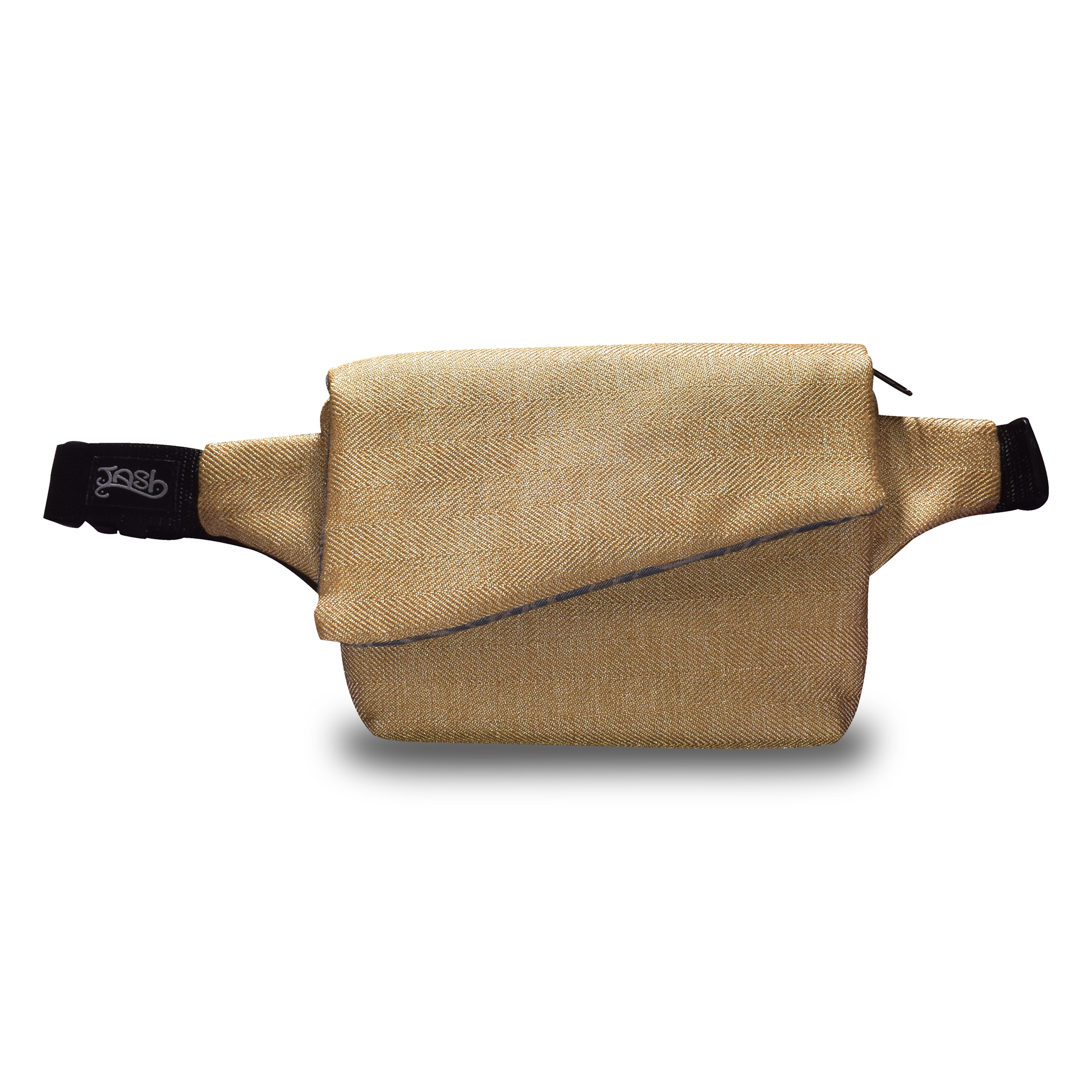 Este Fanny pack de JASH rinde homenaje a la elegancia tejida. Confeccionado en una tela con patrón “herringbone” que recuerda al grano del trigo bajo el sol, su tono dorado cálido ilumina sin gritar, aportando un toque sofisticado a cualquier outfit.