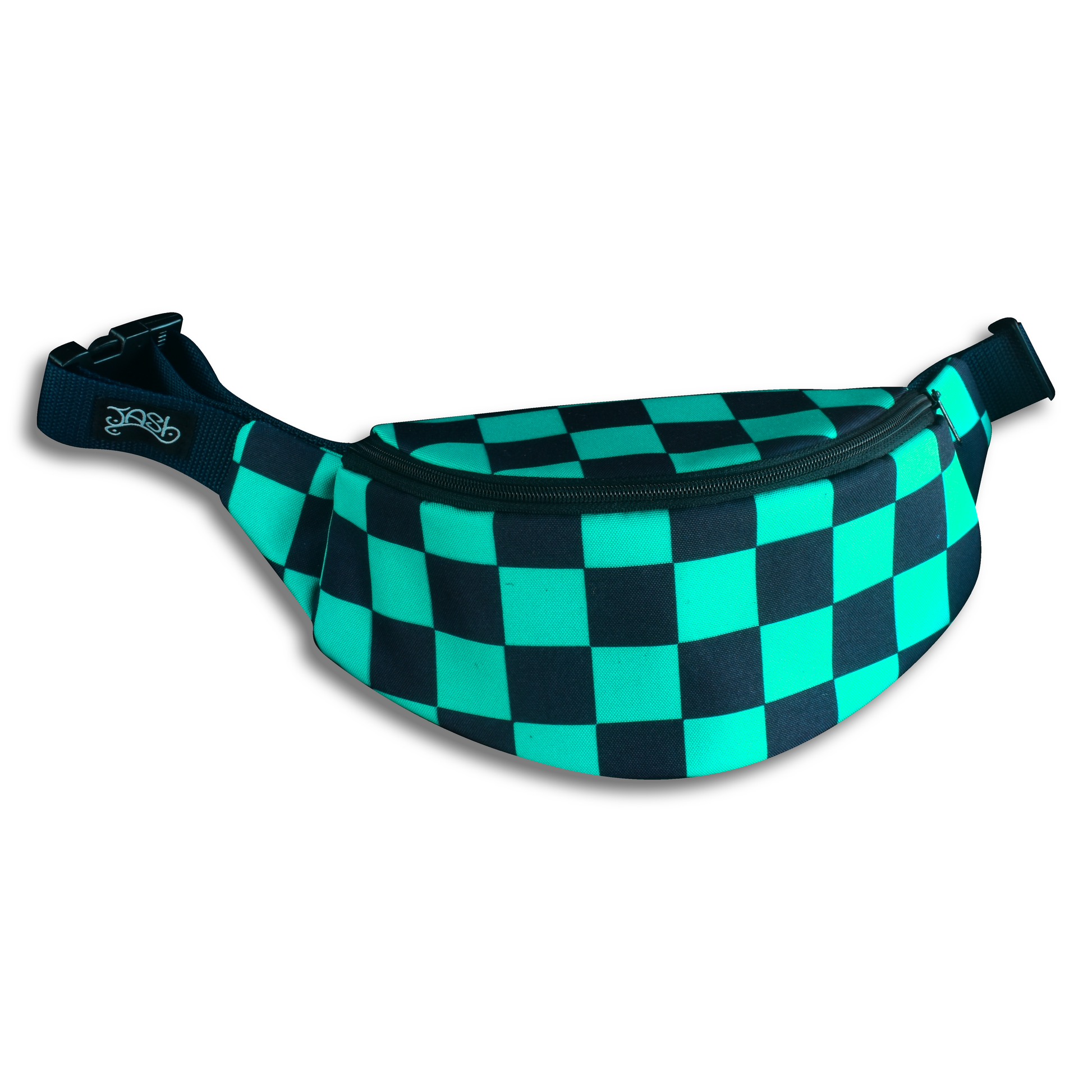 Inspirado en la icónica tela de Tanjiro Kamado, el protagonista de Demon Slayer, este Fanny pack “Tanji” honra el poder, la valentía y el estilo inconfundible de un verdadero héroe. El patrón en cuadros verde jade y negro no solo grita anime vibes, también es perfecto para quienes caminan por la vida con determinación y flow.