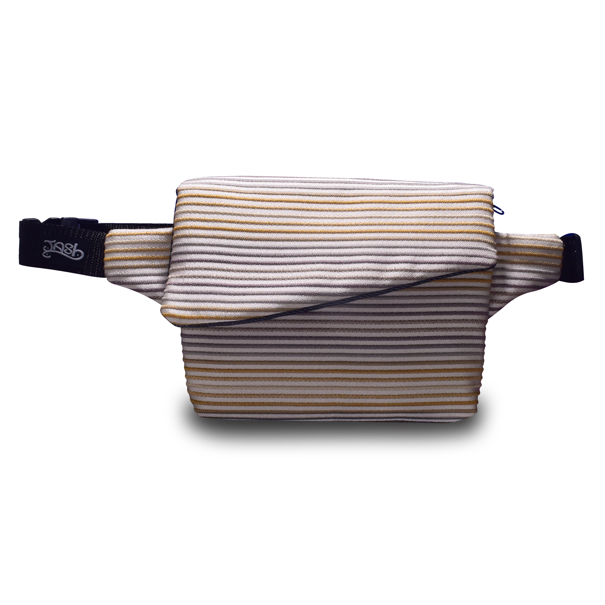Este Fanny pack tipo sobre está hecho con una tela texturizada de rayas horizontales en tonos arena, crema y gris claro. El diseño minimalista se realza con la elegancia de los colores neutros y la textura suave al tacto. Perfecto para quienes buscan estilo sin esfuerzo.