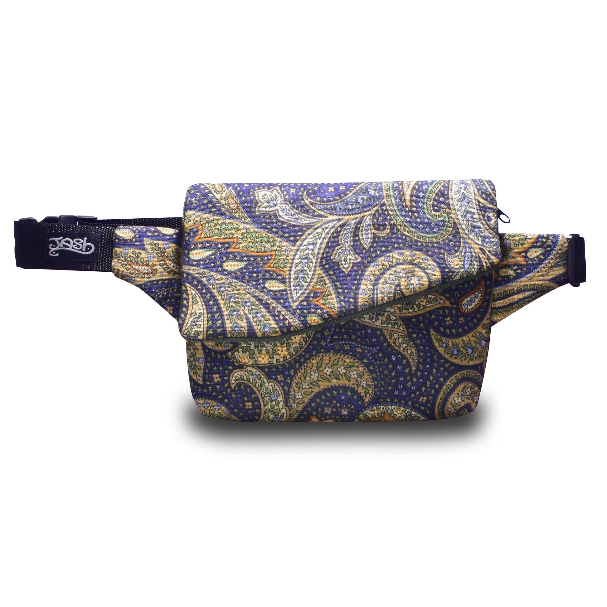 Elegancia vintage. Este Fanny tipo sobre de JASH está confeccionado con tela de tapicería estampada con un diseño paisley intrincado en tonos azul marino, verde oliva, mostaza y crema. Es la mezcla perfecta entre sofisticación clásica y espíritu libre.