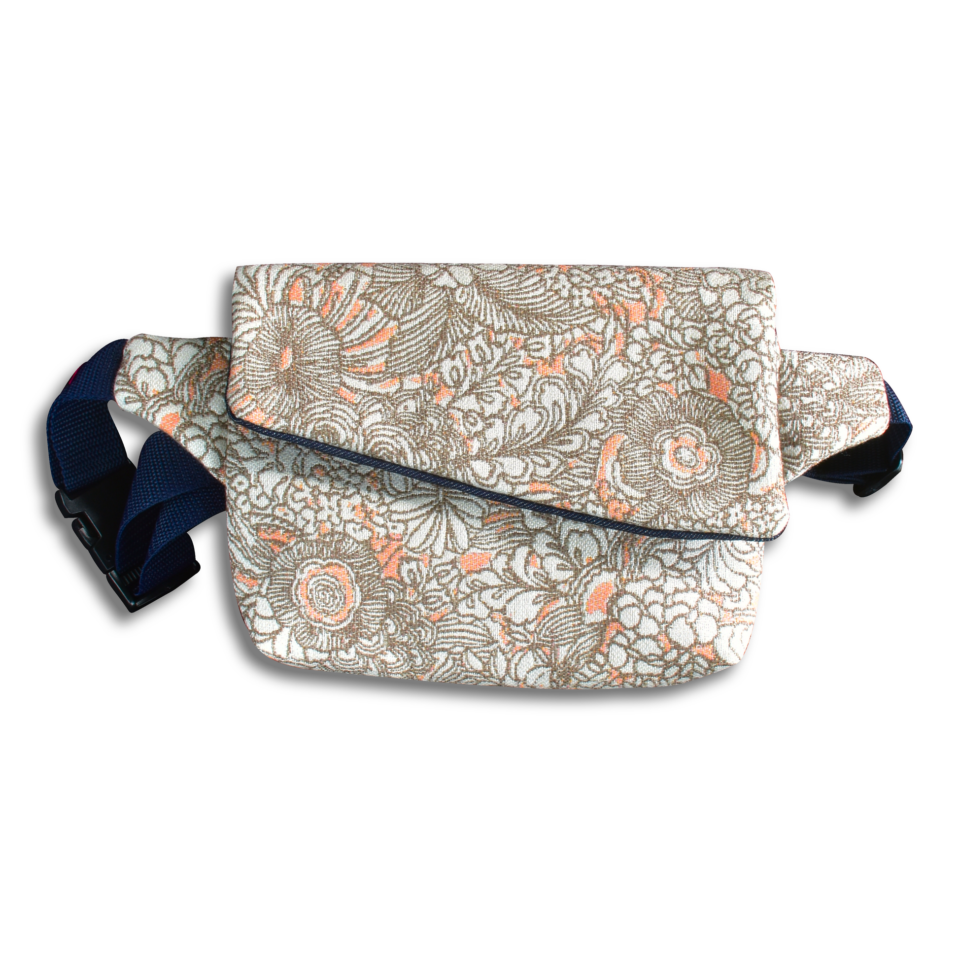 Suave como una tarde nublada y romántica como un jardín secreto: así es Pastel Floral. Este Fanny tipo sobre está confeccionado con tela de tapicería de textura rica, cubierta por un patrón floral en tonos grisáceos y coral claro que parece sacado de un sueño vintage.